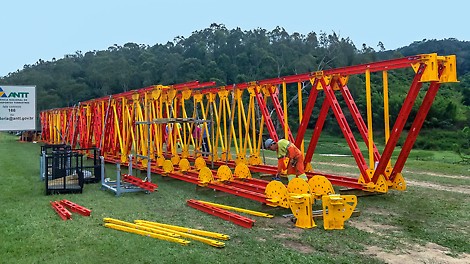 Gracias a esta innovadora solución constructiva, la viga de acero ALPHAKIT, de 2,62 m de longitud, pesa tan solo 44 kg. De este modo, pueden premontarse manualmente conjuntos de cerchas y torres en el suelo. Esto reduce notablemente la necesidad de emplear una grúa, que solo será necesaria para levantar las torres y colocar los paquetes de cerchas.