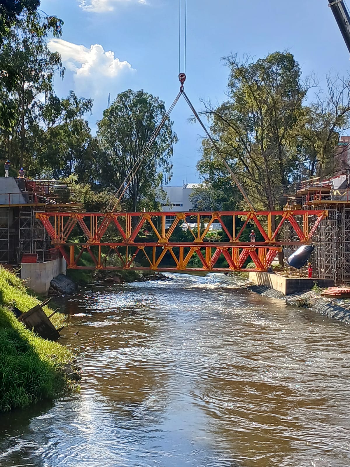 Las torres ST-100 fueron utilizadas como sistema de apuntalamiento para soportar las vigas principales y los nervios estructurales del Puente Biblioteca. Estas torres, diseñadas para ofrecer máxima estabilidad y resistencia, permitieron la distribución eficiente de cargas en el proceso de construcción.